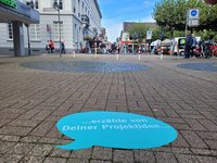 Wie so oft bei Festlichkeiten in Uerdingen war das Quartiersbüro auch beim Herbstfest mit dabei, um Ansprechpartner für die Bewohnerschaft zu sein. Themen gab es dieses Mal gleich mehrere: Auf den Boden von Ober- und Niederstraße geklebte Sprechblasen wiesen den Weg zum Infostand des Quartiersbüros, an dem insbesondere über die Fördermöglichkeiten des Verfügungsfonds informiert wurde. Für kleine Projektideen aus der Bewohnerschaft und von Akteuren im Stadtteil können auf diesem Wege Mittel aus zwei Verfügungsfonds beantragt werden. Auf bequemen Liegestühlen war Zeit zum Gespräch über die Fördermöglichkeiten. Haben Sie Interesse, ein eigenes Projekt umzusetzen? Dann sprechen Sie uns an bzw. informieren Sie sich hier auf unserer Homepage.